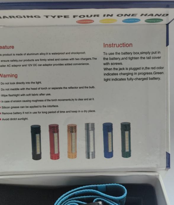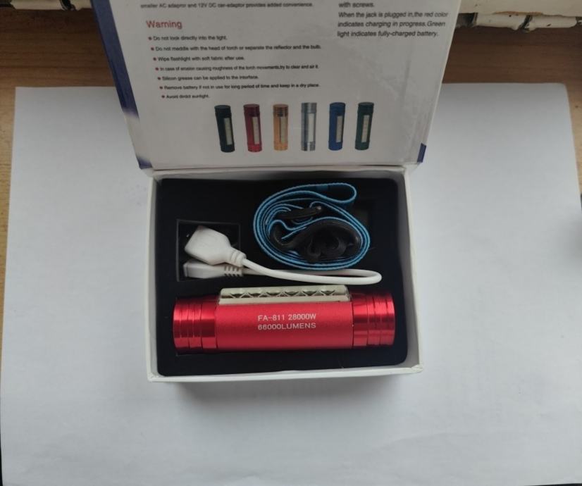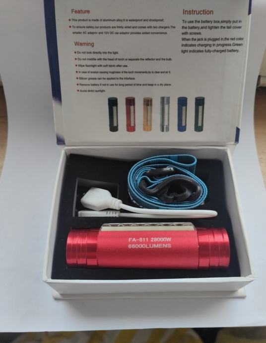 Sadržaj,kutija kabal za punjenje i traka za glavu.