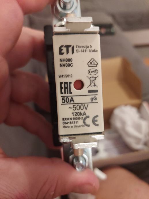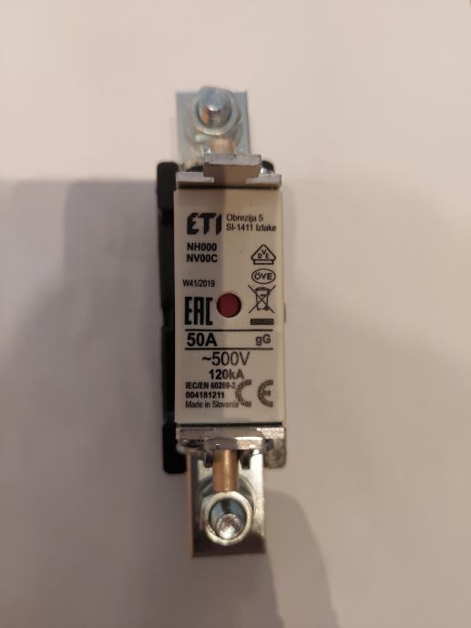Eti rastalni osigurac 50 A, sa postoljem,novo