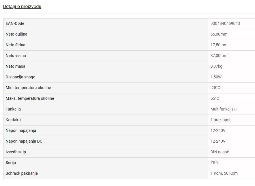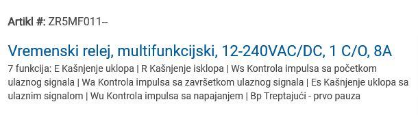 NAPAJANJE: 12-240VAC/DC, JEDAN PREKLOPNI KONTAKT: 1 C/O( 8A).