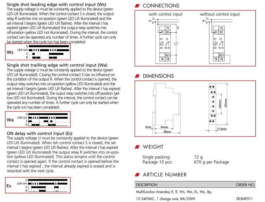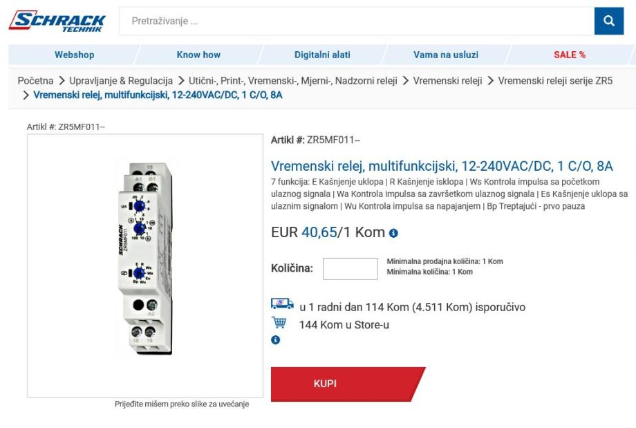 NOVO NE KORIŠTENO SCHRACK ZR5MF011 U ORIGINAL PAKIRANJU, Vremenski relej, multifunkcijski,