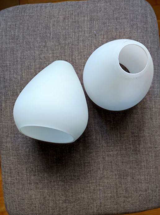 Dva staklena sjenila od mliječno bijelog satiniranog stakla prodajem u paru ili pojedinačno. Bez oštećenja, kao novo.