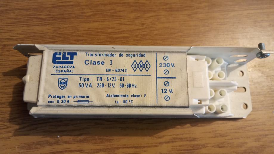 Transformator clase 1 španjolske izrade snage 50VA sa osiguračem na primaru od 0,30 A