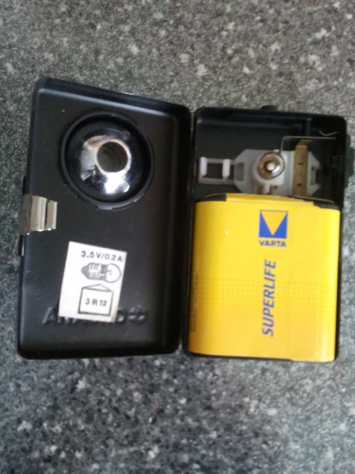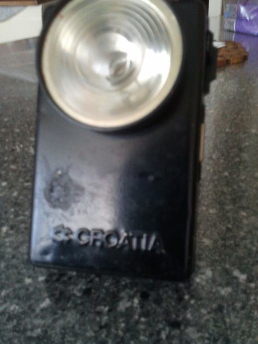 lampa CROATIA-sa baterijom -stara željezničarska,sa prekidačem u gornjem dijelu i sa strane, ispravna-vidjet,probat ,kupiti u TrnskomN.Zgb ,vidi slike! mt(gl. vrata lagera))