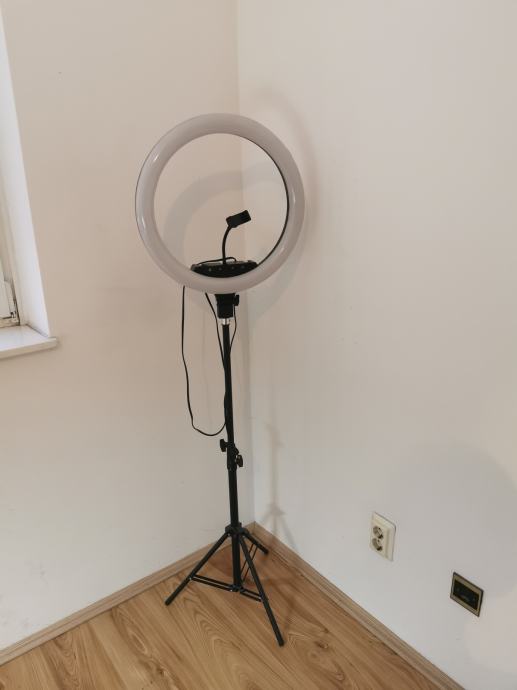 Prodaje se ring light s podesivim stalkom po visini. Dolazi sa držačem za mobitel i daljinskim upravljačem. Svjetlo je podesivo, od toplije prema hladnijem.