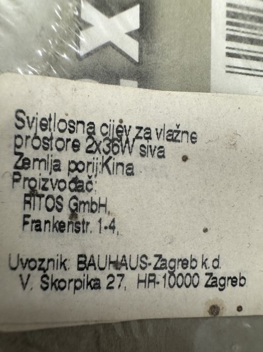 Prodaje se nova RITOS svjtelosna cijev za vlažne prostore 2x36W siva.