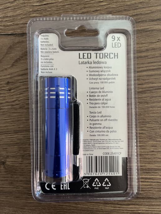 Aluminijska svjetiljka, 9 LED; 3 AAA baterije (nisu uključene), novo