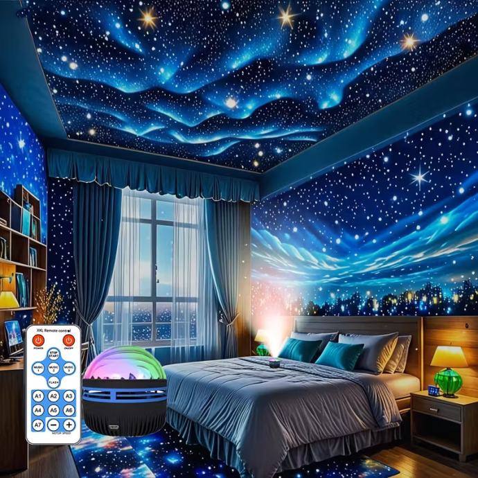 Sjeverno svjetlo LED ambijentalno svjetlo projektora RGB daljinski upravljač, noćno svjetlo za spavaću sobu, ukras za sobu za odrasle, RGB rotirajuća glazba Sjeverno svjetlo ambijentalno LED noćno svjetlo projektora zvjezdanog neba - stolni projektor zvjezdanog neba s daljinskim upravljačem