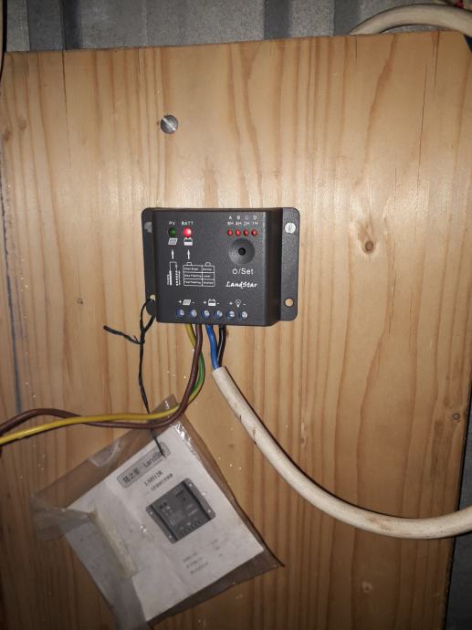 Komplet solarni 12 v za rasvjetu sastoji se od dva panela po 80 w i 90 w regulatora punjenja i pražnjenja akumulatora i led rasvjete .komplet je u funkciji te se može vidjeti i isprobati . Prodaje se sa pretvaračem 12 v - 220 v 300 w .