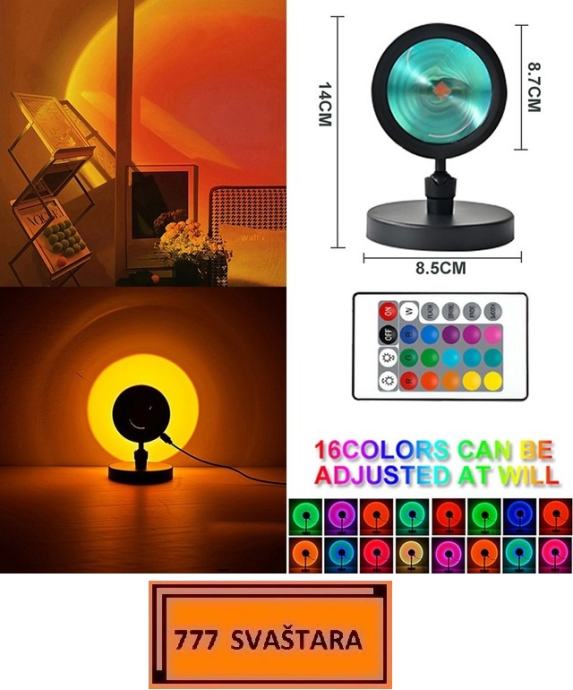 Paket uključuje: 1 x lampa za zalazak sunca + daljinski upravljač za mjenjanje boja