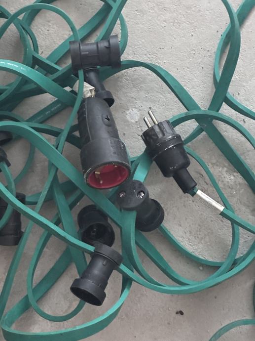 Žarulje jakosti prema želji (najbolje 15w ) žarulje se samo zašerafe i stvaraju prekrasan ugođaj za posebne prilike. Topla i ugodna svjetlost savršeno uljepšava druženja na terasi ili vrtu. Dužina jednog lanca je 20 m (20 žarulja). Lanci se mogu spajati i tako produžiti. Lanci su od kvalitetne zelene gumene trake njemačke proizvodnje. Lanac je korišten samo jedan puta za svadbu.