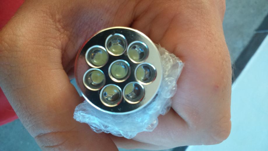 Orginalna svjetiljka s 8dioda jakih i ide samo jedna velika baterija unutri te svjetiljka ko nova nekoristena u omotu izvadena radi slikanja!