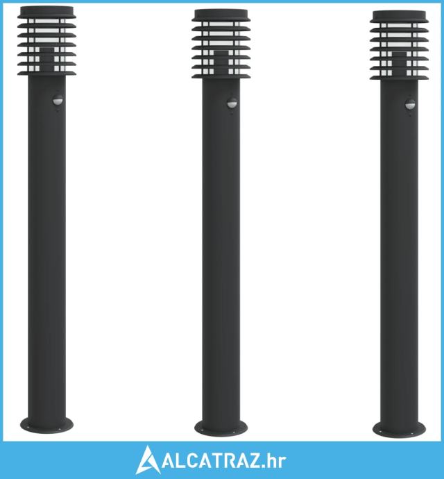 Vanjske podne svjetiljke sa senzorima 3 kom crne 110 cm čelik - NOVO