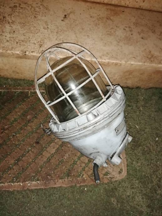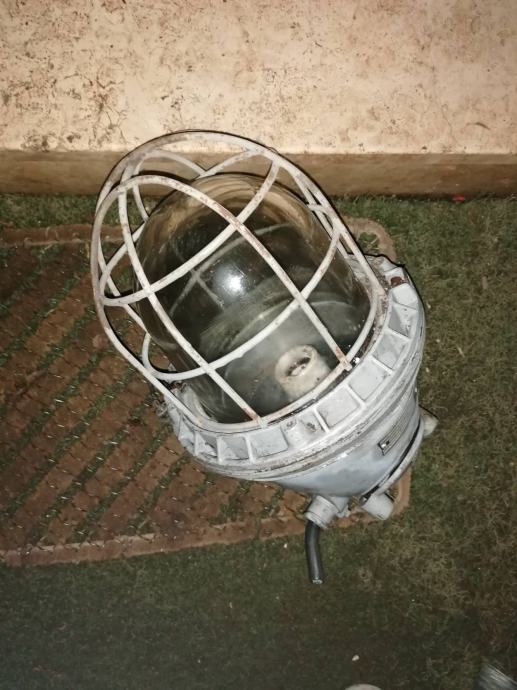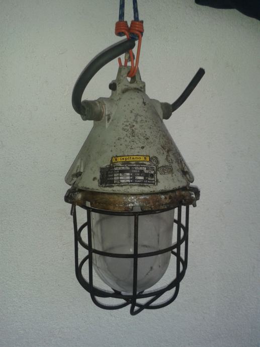Viseća industrijska lampa TEP sa zaštitnim staklom i žičanom rešetkom.Tijelo od aluminija s grlom.