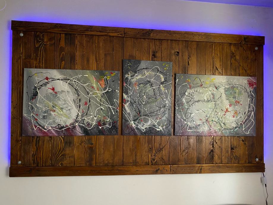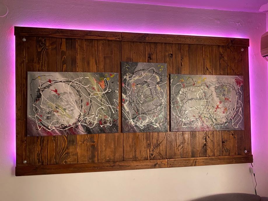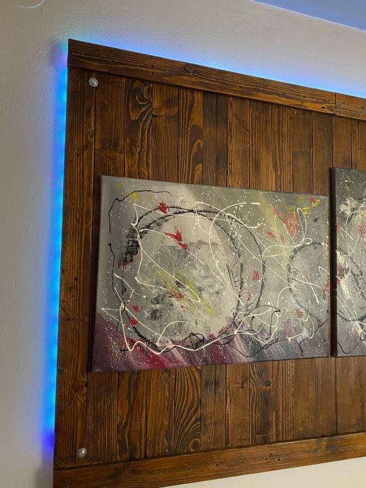 Prodajem ručno rađenu dekoraciju, izrađeno od punog drveta sa trodijelnom apstraktnom slikom koja je također ručni rad. Iza je sprovedena LED RGB rasvjeta koju možete podešavati uz pomoć daljinskog. Lakirano i zaštićeno. Uz dekoraciju idu tipli i vijci, Odlično kao noćna rasvjeta ili dekoracija bilo koje prostorije. Cijena 2300 kn.