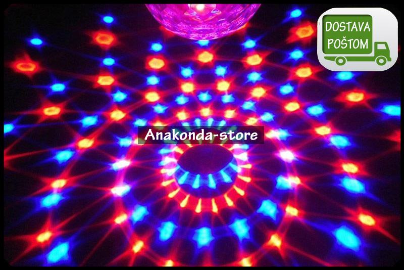 LED RGB kristalna disko kugla snage 20 W .Kugla se automatski rotira kada je upaljena. Daljinsko upravljanje bojama , vrtnjama , flash-evima. 3 načina rada : DMX , master , osjetljivost na glazbu