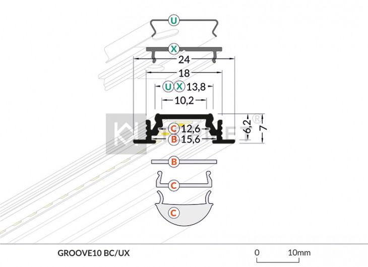 Al profil za ugradnju led trake.GROOVE