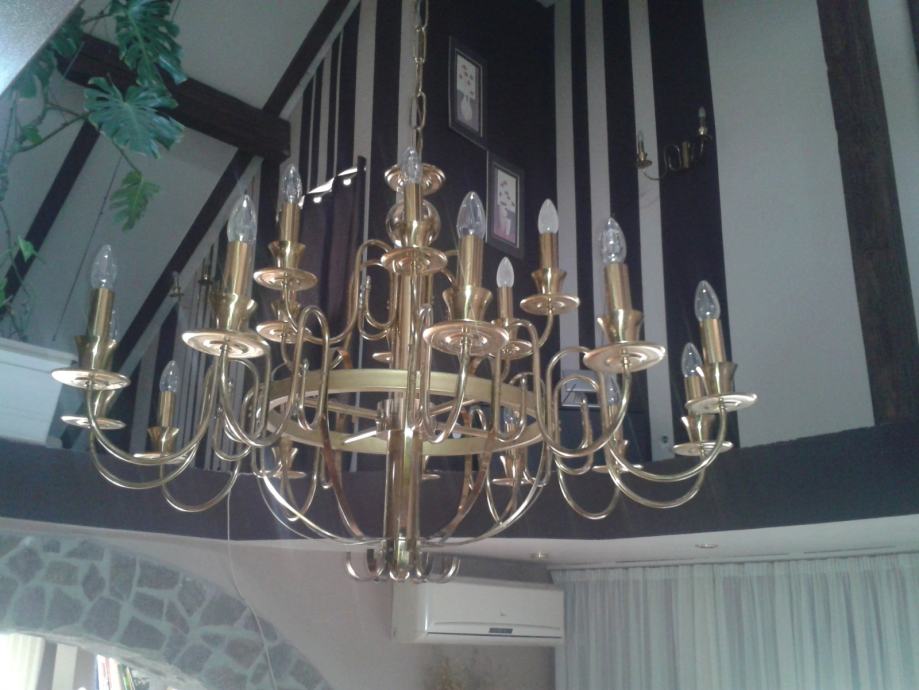 Mesing luster star preko 50g. Promjera 120/80cm,visina se regulira do čak 230cm. Moguća dostava. Cijena lustera 5000kn. Zidne lampe koje idu odlično uz luster 5kom. 500kn po komadu.Popust za kupnju u kompletu.