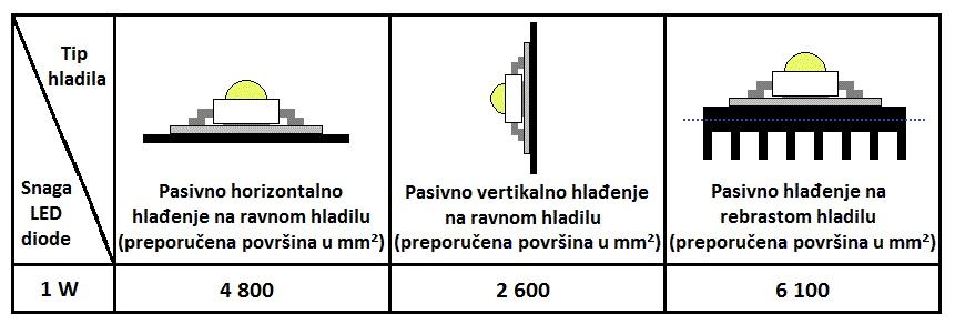Ove LED diode poželjno je montirati na hladilo! No ukoliko LED radi na temperaturi ispod 10°C, hladilo nije potrebno. U svim drugim slučajevima kada LED kontinuirano radi dulje od 10 minuta preporuča se korištenje hladila, jer u slučaju pregrijavanja životni vijek LED diode pada! Preporučene dimenzije hladila date su na slici uz oglas.
