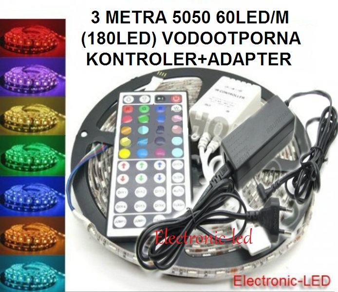 AKCIJSKA CIJENA KOMPLETA(5050 RGB 3m 180led dioda controller s daljinskim 44funkcije adapter) 190kn