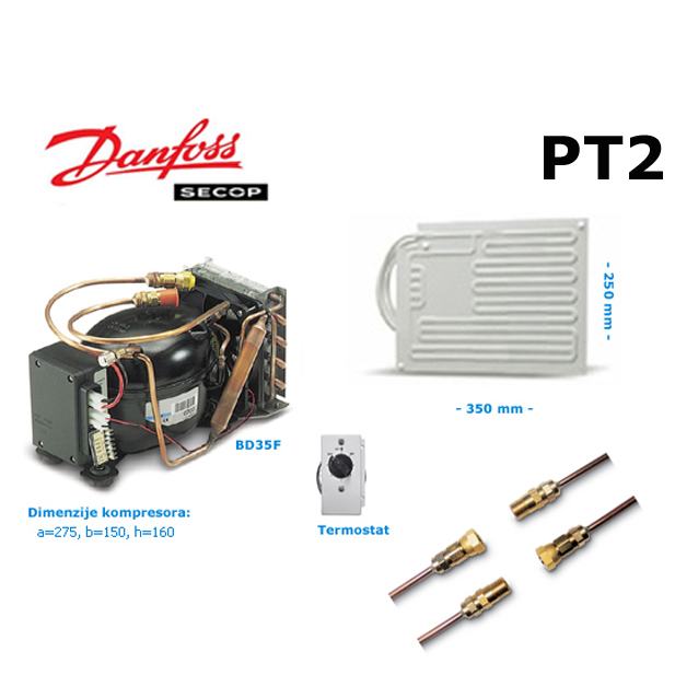 Sistem je več vakumiran i napunjen plinom R134. Za puštanje hladnjaka u pogon potrebno je samo spojiti brze spojke kompresora i izparivača te priključiti 12/24V dc napajanje. Dužina priključne cjevi isparivača je 2 m.