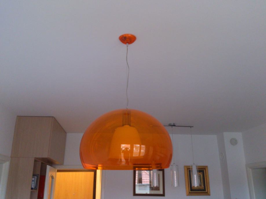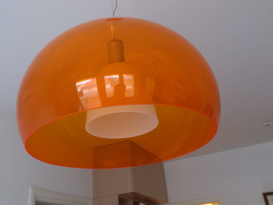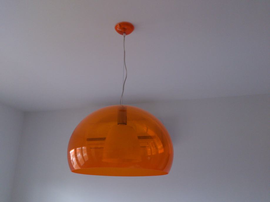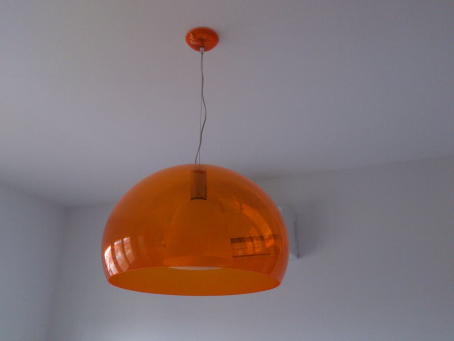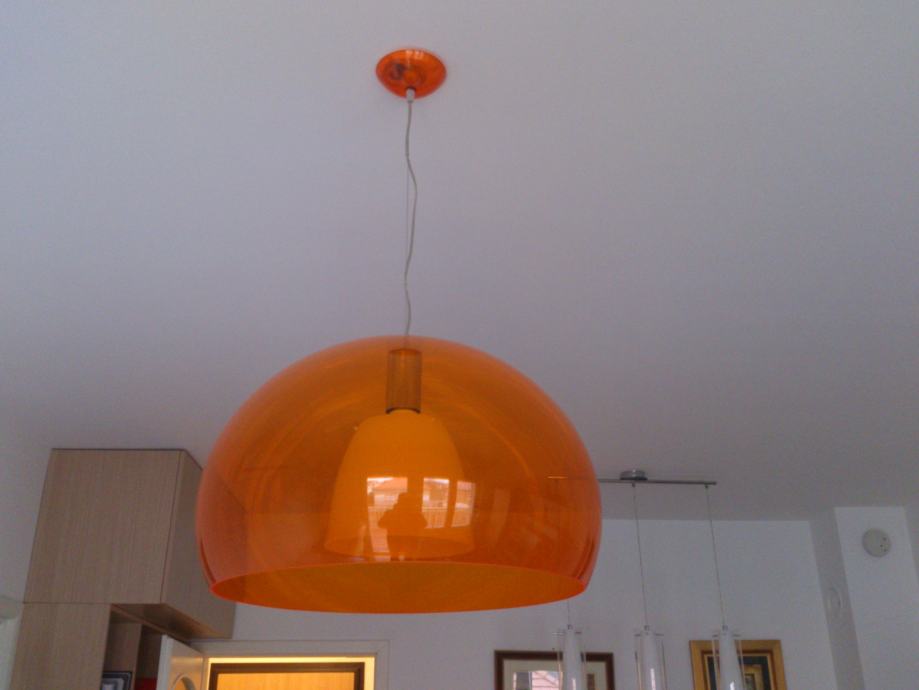 Izuzetno atraktivan, ispravan, slabo korišten, odlično očuvan, Kartell Fly Ceiling Suspension Light Transparent Orange luster, s manjom preinakom radi boljeg osvijetljena!