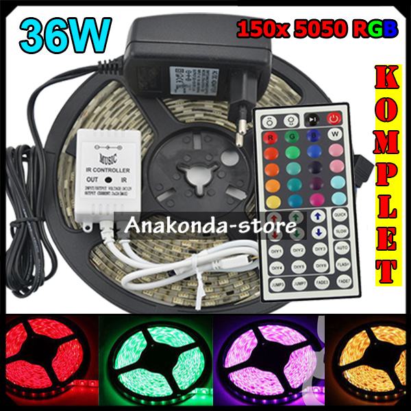 KOMPLET ✅ 36W LED Traka 150-5050 RGB 5m + Adapter + Daljinski 44 Tipke