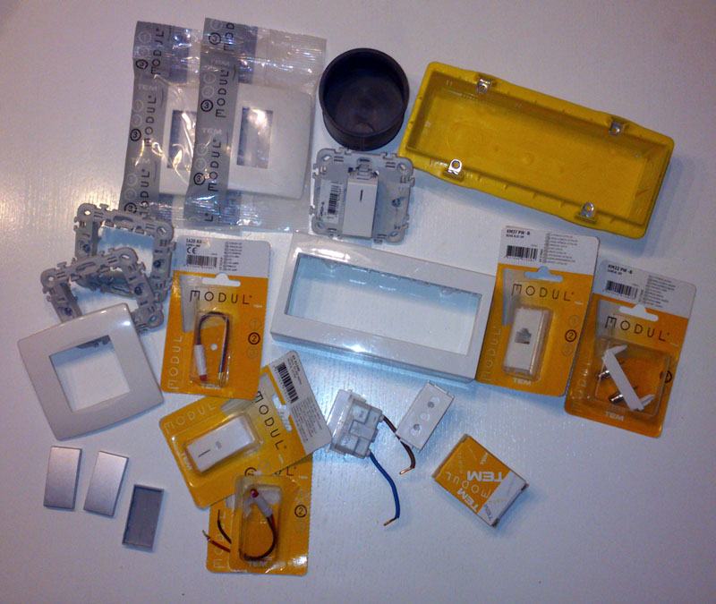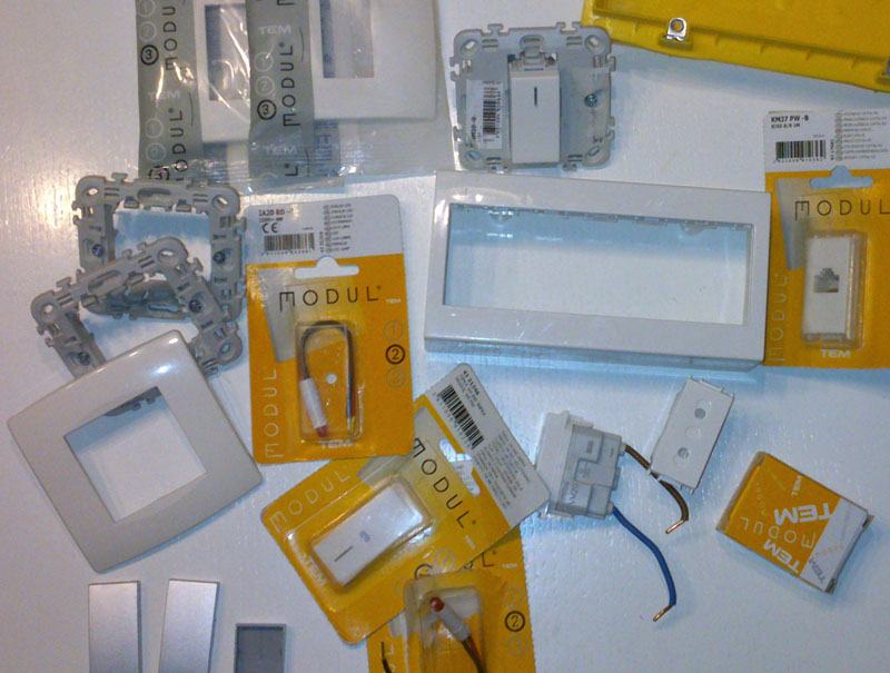 Strujni prekidači i moduli TEM ostatak pribora od izrade elektroinstalacija.