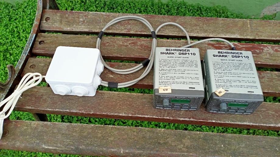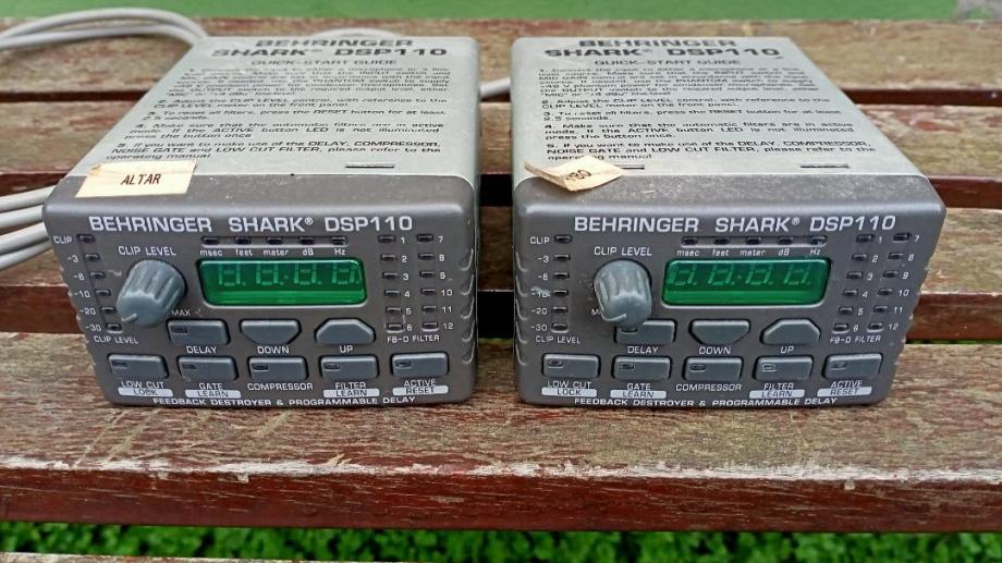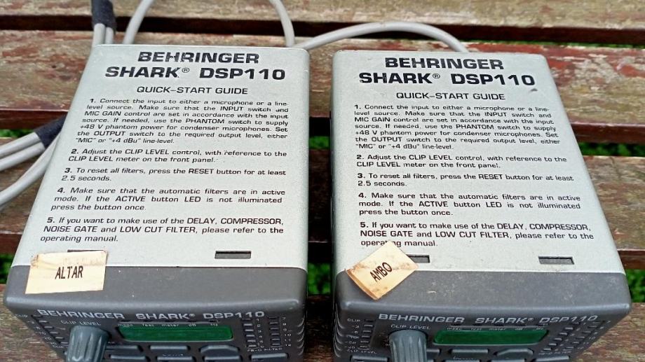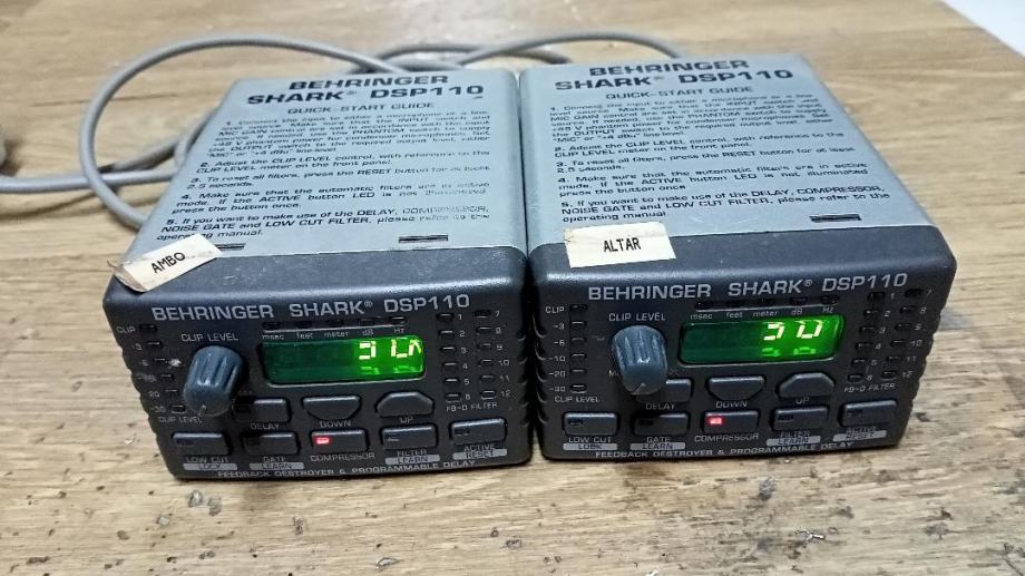 Par rabljenih ali potpuno ispravnih i funkcionalnih uređaja BEHRINGER SHARK DSP-110 za optimizaciju mikrofonskog signala na dva najzahtjevnija mjesta u crkvi, oltar i ambon, prodajem za 180 eura za komplet, zadnja cijena. U principu služe za izjednačavanje nivoa glasnoće iz mikrofona bez obzira na udaljenost sa koje se govori i potiskivanje mikrofonije. Onaj koji će to montirati mora biti stručan i znati što radi, a detaljno uputstvo za rukovanje lako je naći na internetu. Na fotografijama je vidljivo što je u pitanju a mogu poslati poštom pouzećem uz nadoknadu poštarine. Preporučam informacije preko Njuškala kako bi ostao pisani trag eventualnog dogovora, ali može i mobitelom u razumno vrijeme.
