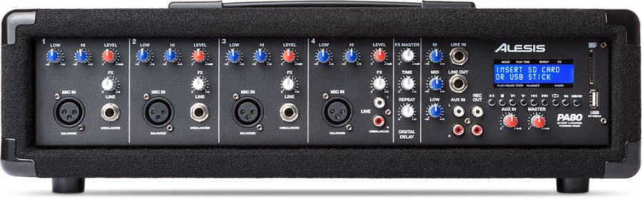 The PA80 Powered mixer also features USB and SC Card inputs for playing MP3s--- perfect for intermission music at an event or for learning music from a recording as a group. The onboard controls can be used to play, stop, or change tracks, as well as change the EQ of the MP3 audio to cater to pop, rock, jazz or classical.