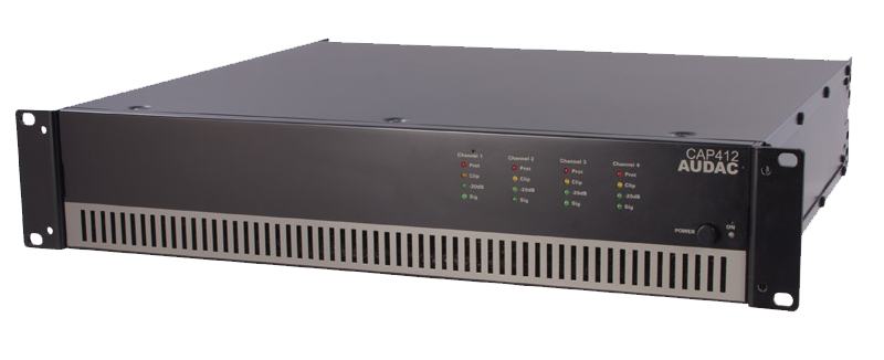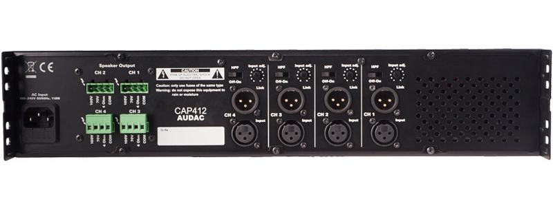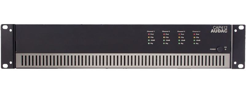 CAP412 is a professional four channel 100V power amplifier which is capable of providing 120 Watt to each of the four separate output channels. This creates a great flexibility and new possibilities for installed Multi-Zone audio distribution systems.