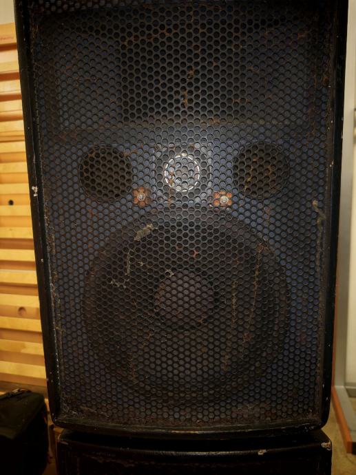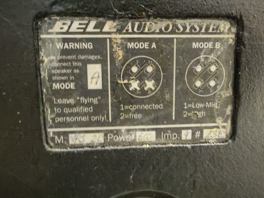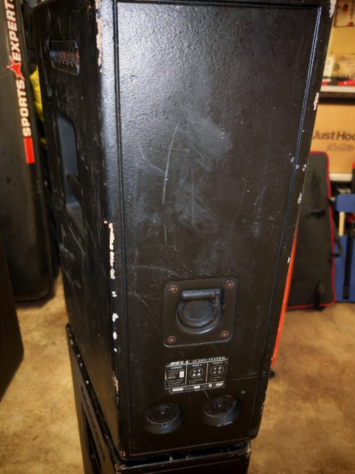 Razglas od 2,4 kw sa 2 Bell pojačala PCX-9024, 2 Bell drvene bas kutije, svaka sa po dva 15" zvučnika te dva gornja Bell zvučnika te Yamaha 24 kanala mixeta MG24/14FX. Za pojačala imam drveni tapecirani rack.