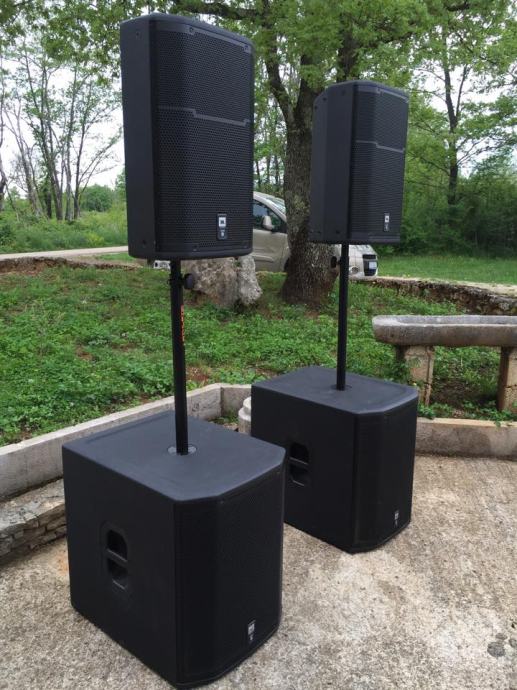 2 aktivna basa PRX618S-XLF (18'', 1000 W Crown dig. pojačalo, max SPL 133 db, ugrađen dbx procesor) i
