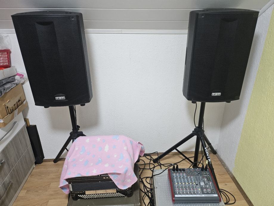 Prodajem aktivne zvučne kutije FBT Promax 114,2x900 w RMS made in italy.Zvučnici su ko novi stari 2g.Ja sam prvi vlasnik posjedujem račun, placene su 2000 eura upotrebljavani samo kod kuće Zamjene me nezanimaju samo prodaja cijena je 1450 eura.