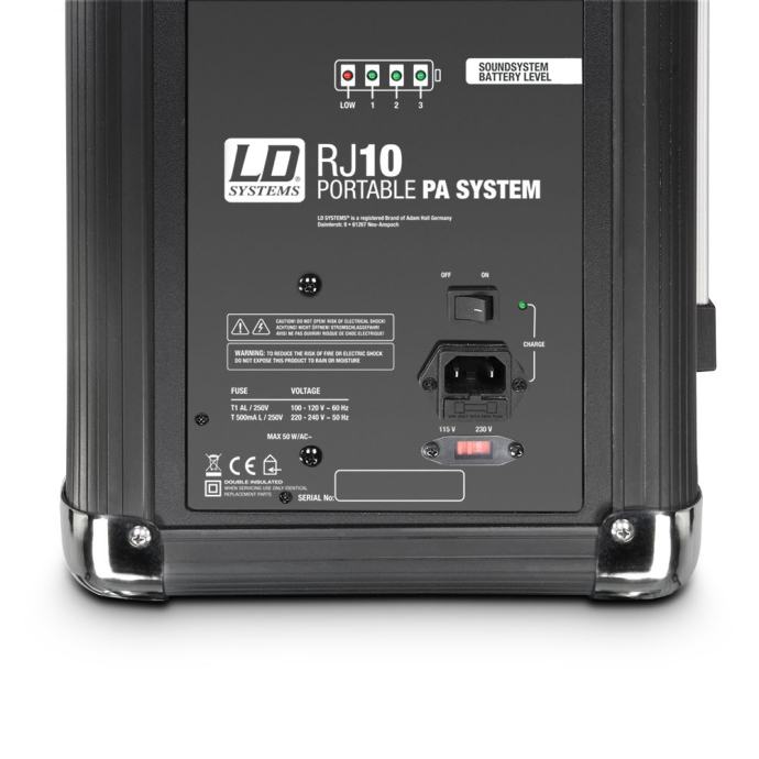 Sa ugrađenim kotačićima i ručkom, LDRJ10 je idealan prenosivi razglasni sistem koji se napaja putem punjivih baterija koje drže do 20 sati. Frekvencijski raspon je od 90 Hz do 18 kHz, a snaga je 50 watta. Roadjack ima ugrađeni i 3 kanalni mikser sa posebnom kontrolom glasnoće, 2 kanalnim EQ-om, reverbom i master volume kontrolom. Ulazi su kombinirani 6.3 jack, RCA i 3.5 mm TRS mini jack čime se omogućava spajanje veliki broj izvora zvuka. Još jedna od prednosti je i bežićno spajanje putem Bluetooth playera pa glazbu možete reproducirati i sa svog telefona ili tableta. Player čita i SD kartice i USB stikove. Roadjack 10 može se montirati i na zvučnički stalak, a može se upravljati putem daljinskog upravljača.