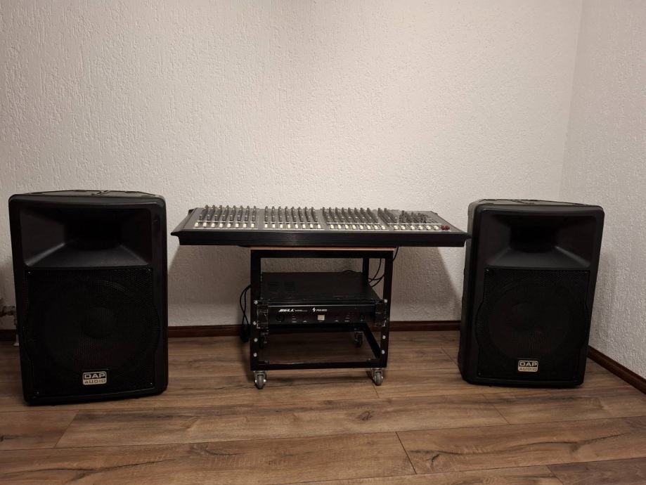 Prodaje se razglas koji se sastoji od dva zvučnika Dap Audio K- 115,pojačala Bell PSX 6022 te racka i analognog mixera Phonic Impact 28 kanala.Razglas je ispravan i ugodnog zvuka te će zadovoljiti i one koji žele nešto bolje.