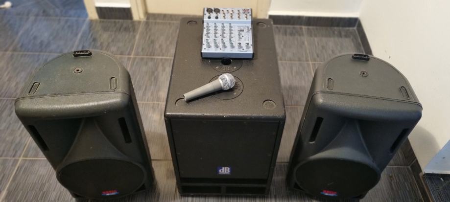 Prodajem navedeni razglas, bas bin, 2 zvučnika i mikseta. 450/2x150W. Bas bin 12", zvučnici 10". Mikseta je odlična sa dobrim dig. efektima. Razglas je pogodan za manje svirke, live, dj. Praktičan za transport, stane sve u manji auto. Odličan mali razglas, prodajem zbog kupnje novog.