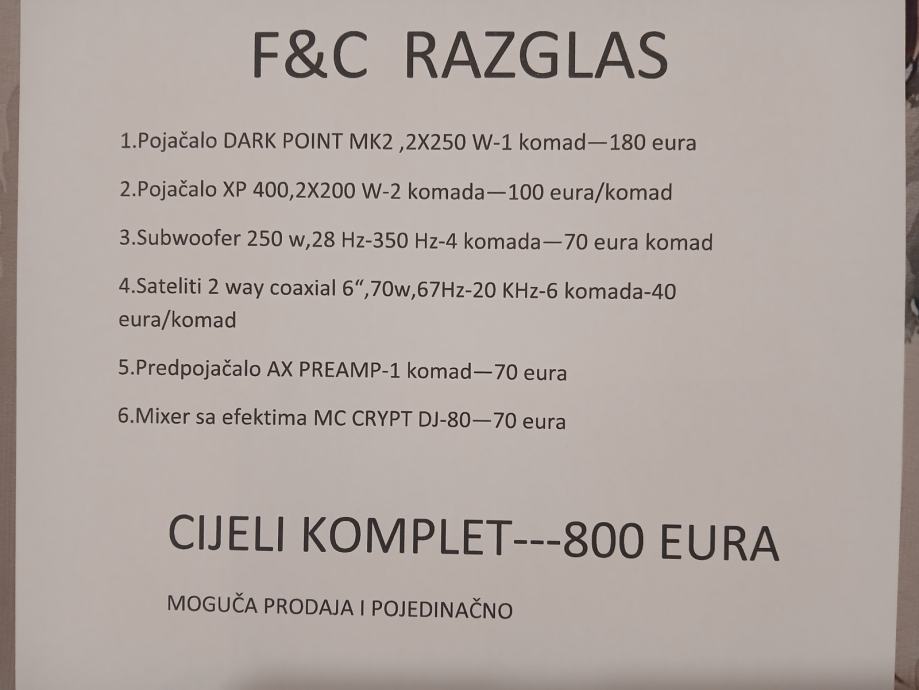 Prodajem kvalitetno ozvučenje za lokal,terasu,kafić,profi komponente,odlično stanje,sve ispravno i uredno