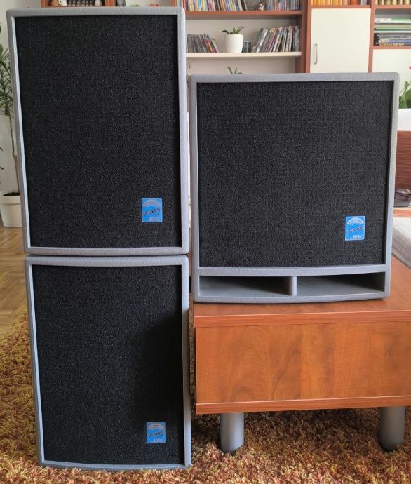 Made in Germany! Subwoofer active 15 D, 2x top units passive PA 1122. Detaljne specifikacije na slici iz kataloga (katalog ide s razglasom). Kao nov, bez ogrebotine, prodajem jer mi je višak. Bez zamjena! Cijena fiksna! Moguća proba u Novom Zagrebu. Isključivo osobna primopredaja.