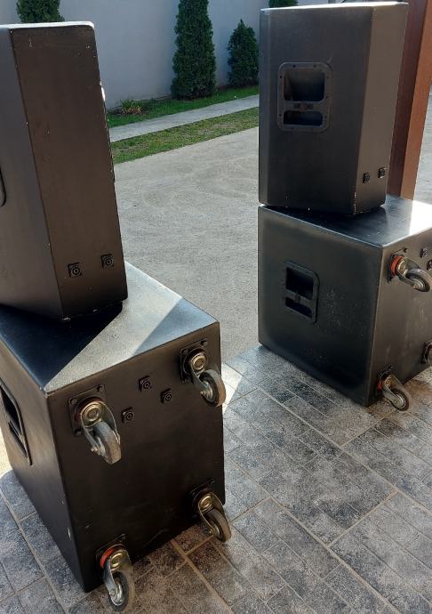 Samo zvučne kutije uz njih idu speakon kablovi i dva teleskopska stalka. Obavezno doći i isprobati prije kupovine.