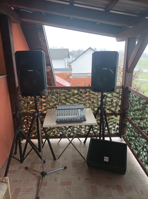Kompletan razglas sa miksetom, zvučnicima, stalcima, monitorom, mikrofonom i stalkom