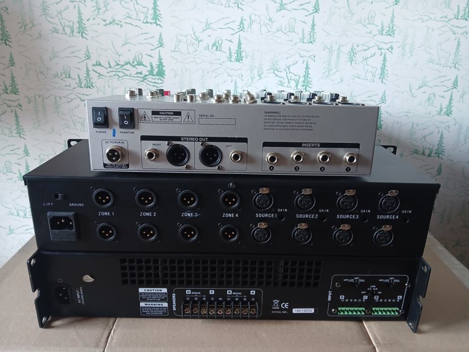 Prodajem sve zajedno u kompletu sa slike,kvalitetan razglasni sistem 4x400 w,četiri zone,malo korišteno,kao novo