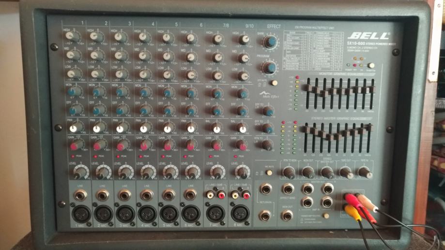 PA Mikseta Bell 8kanala ,2 ekvilajzera,digitalnim efektima 2x300W sa bas zvučnom kutijom 15/250+250W i dva satelita 12/250W sa visokotoncem 30W.Zvučnici su Craft,a oprema je iz kućne uporabe vrlo sačuvana.