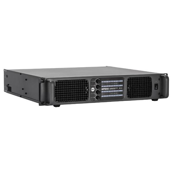 QPS 9600 is a 4 channel power amplifier that can handle exceptionally high power in a compact and lightweight 2 rack units space. Thanks to the class HD technology, this amplifier delivers up to 4 x 2400 W RMS @ 2 Ohm (4800 W RMS bridged @ 4 Ohm), weighting just 16 kg. It comes with switched mode power supply which ensures that a predominantly resistive load is presented to the mains power supply; this also leads to an improved amplifier performance at high output levels. Thanks to its high efficiency heat sinks and variable speed DC fans, the QPS 9600 can withstand the hardest heat conditions ensuring great reliability.
