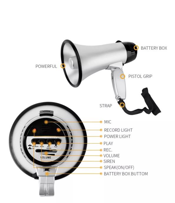 Megafon, razglas, sirena, snimanje glasa, zvukovi, nogomet, koncerti, skupovi, prosvijedi , utakmice , mp3