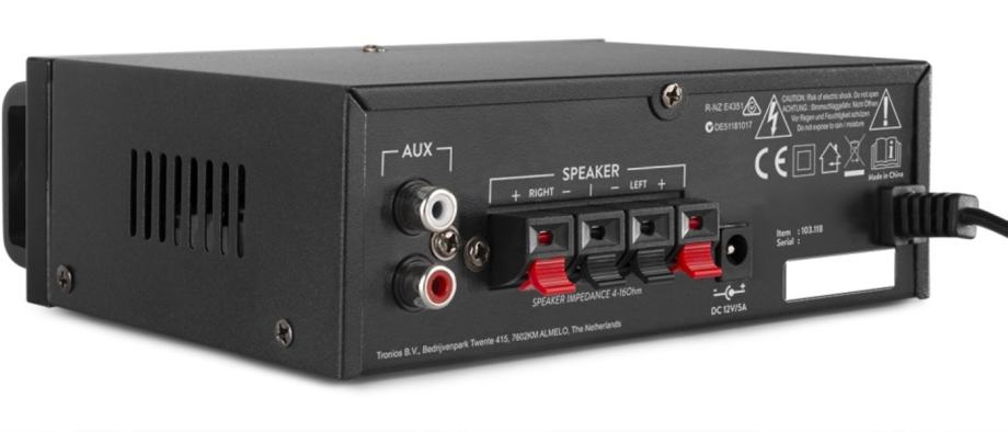 With the AV340 2x 50W nicely designed mini karaoke amplifier you will take your house party to a next level and it will turn your party into a karaoke festival. Featuring a MP3 player with LED indication, USB port, Bass/Treble control, Echo control and a microphone input. Also perfect for applications as HiFi and background music.