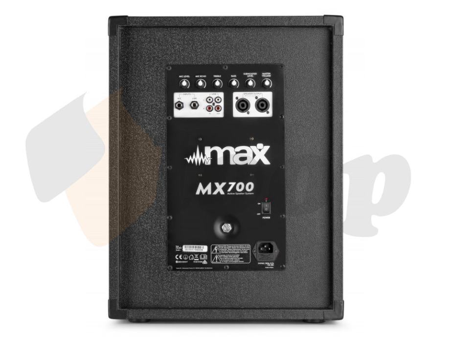 MAX MX700 sustav aktivnih zvučnika sastoji se od bas zvučnika od 400 W s pojačalom i dva srednje-visokotonska satelita od 150 W. MX700 set je prikladan za mobilne DJ-e, karaoke, prezentacije itd.