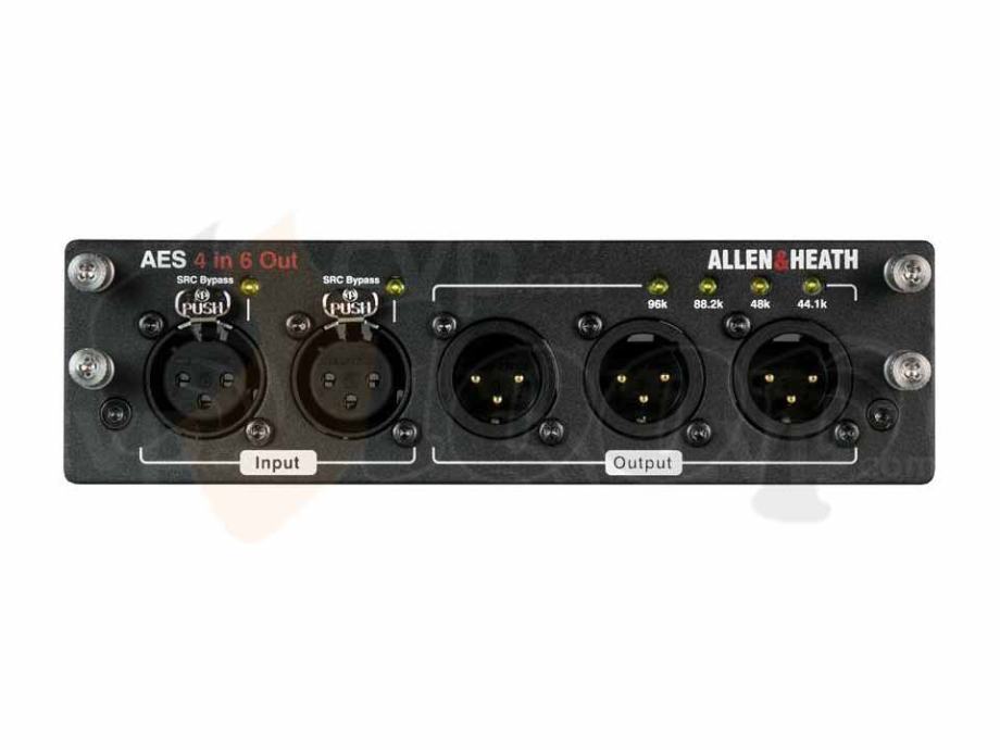 AES3 I / O kartice pružaju prikladno rješenje za digitalno prespajanje dLive na razglasne sustave, pojačala i kontrolere zvučnika. Ovo je verzija kartice s 4 ulaza i 6 izlaza. Rezolucija na izlazu kartice može se mijenjati između 96kHz, 88.2kHz, 48kHz i 44.1kHz, dok ulazi omogućavaju pretvaranje frkvencija od 32kHz do 192kHz. Sve AES3 kartice mogu se ugraditi na bilo koji I / O port Allen & Heathovih konzola dLive ili Avantis.