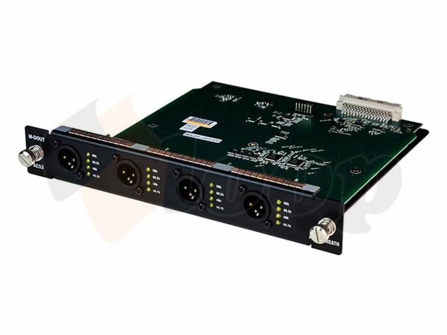 M-DL-DOUT-A je digitalno proširenje za Allen&Heathove miksere dLive i DX32. Sadrži 4 stereo izlaza AES3 s XLR priključcima s promjenjivom rezolucijom uzorkovanja(44.1kHz, 48kHz, 88.2kHz ili 96kHz).