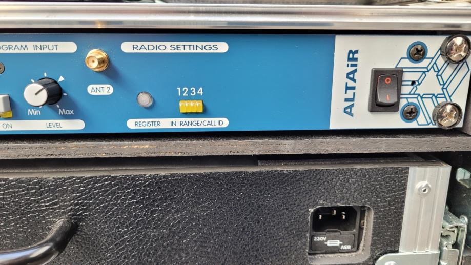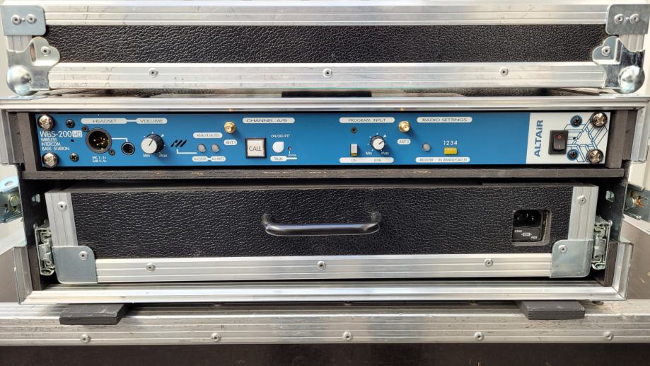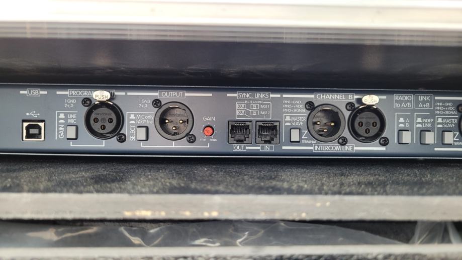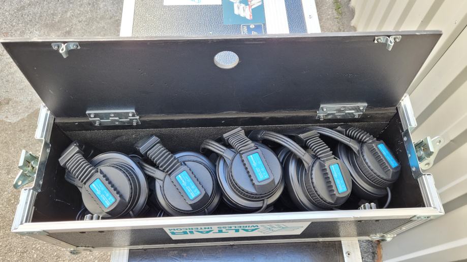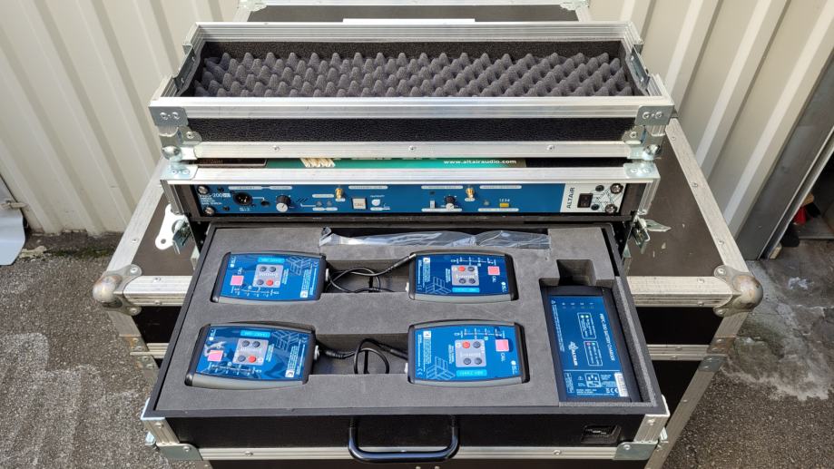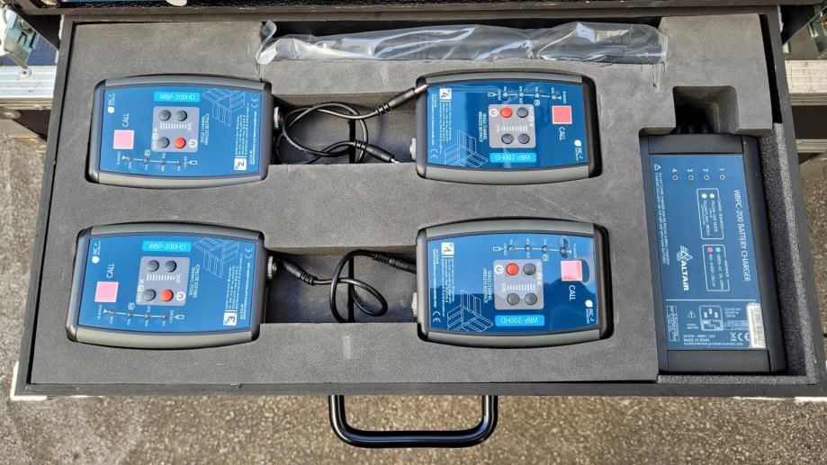 U kompletu dolazi bazna stanica, 4 bodypacka, 5 slušalica, punjiva baterija i flightcase