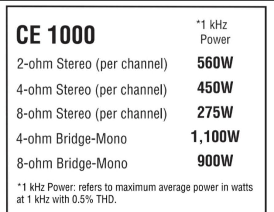 Snaga 2 x 450 w na 4 ohma, bridge 1100w na 4 ohma.